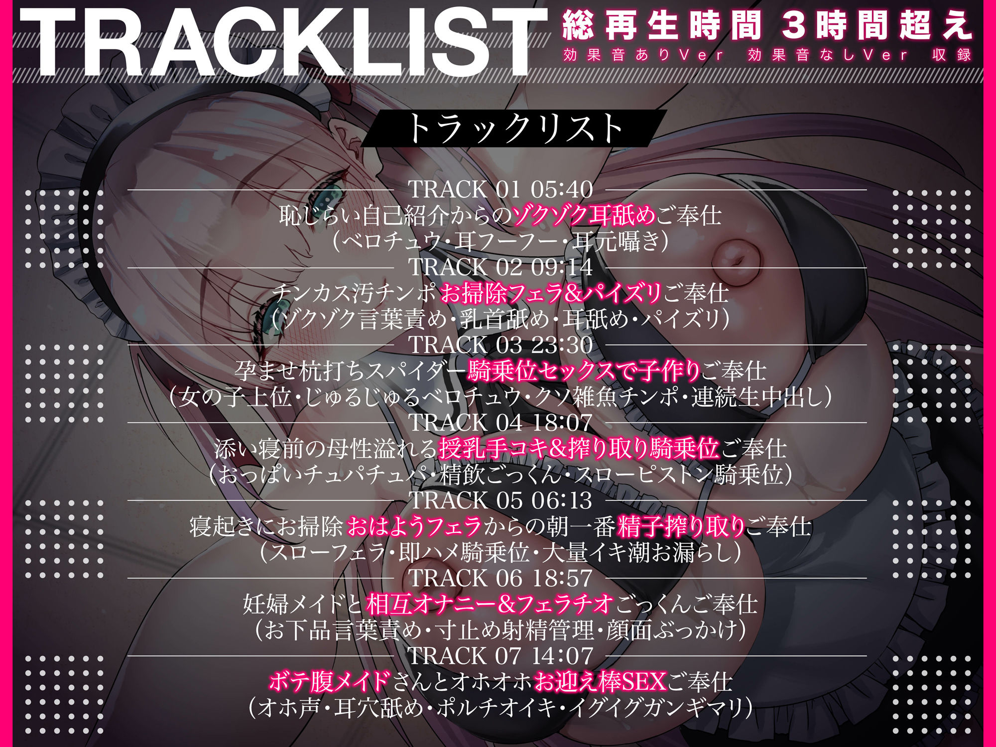 ジャンル: メイド、巨乳、中出し、男性向け、成人向け、ASMR、妊娠・孕ませ、オホ声、KU100、初体験、ラブラブ・あまあま、退廃・背徳・インモラル