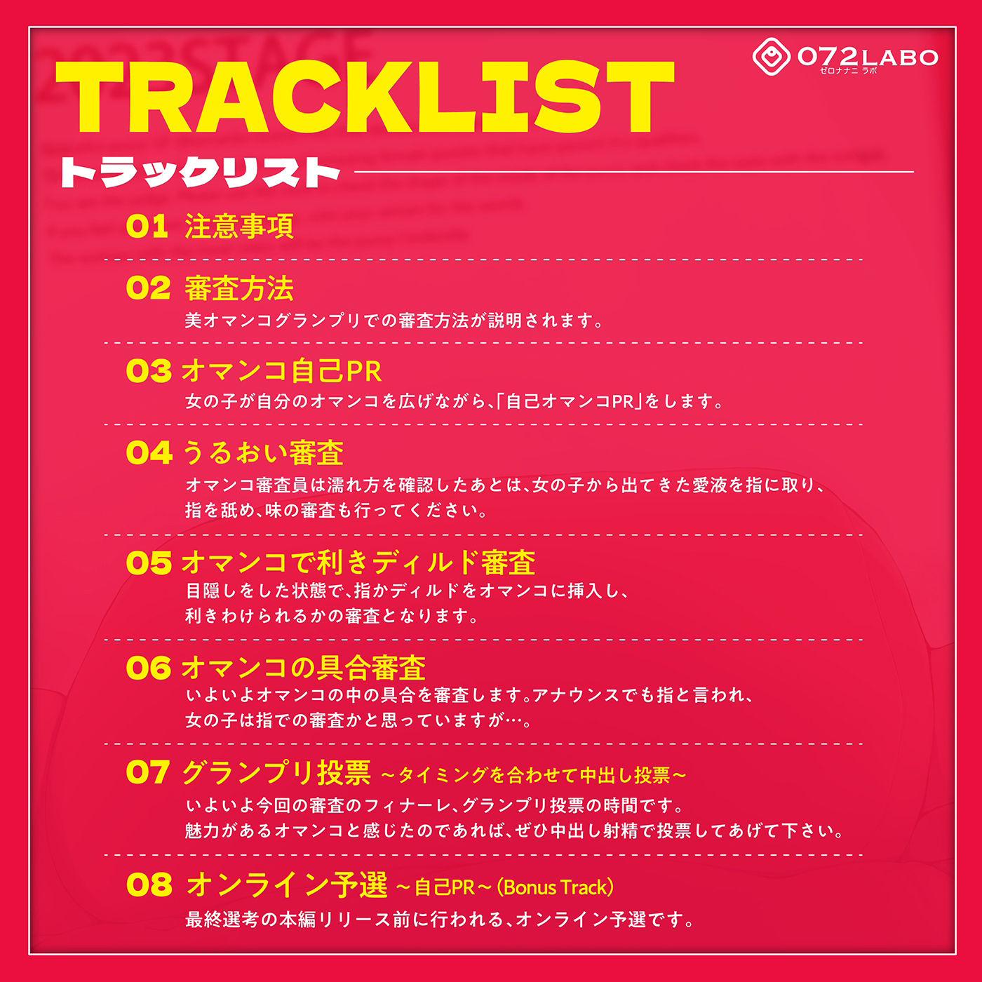 美オマンコグランプリについてと、美オマンコグランプリでの審査方法が説明されます。