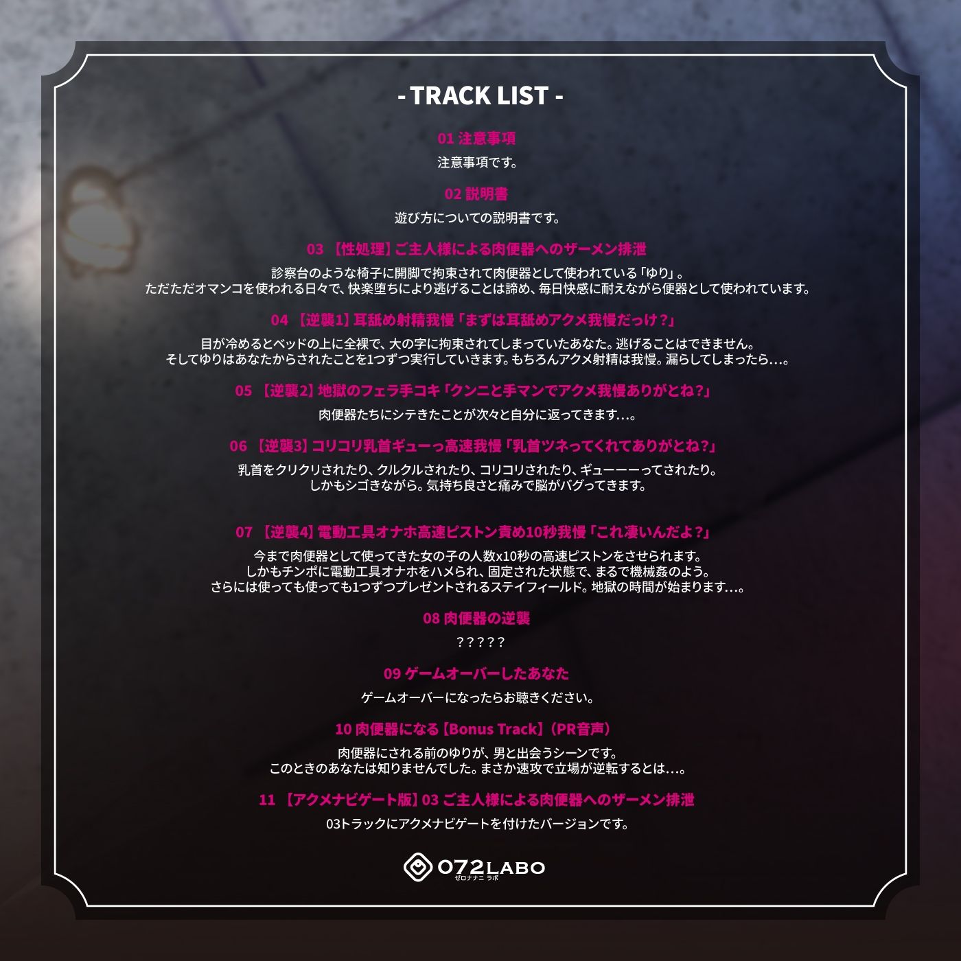 ジャンル: 拘束、中出し、フェラ、監禁、縛り・緊縛、言葉責め、男性向け、成人向け、手コキ、ささやき、連続絶頂、オナサポ